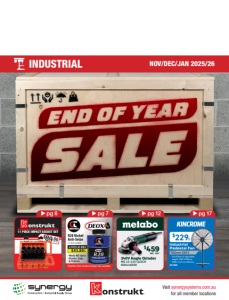 Burton Lismore South Grafton Port Macquarie Morwell Coffs Harbour Dubbo Narambla Orange Bathurst Ulverstone Devonport Derwent Park Rutherford Beres eld Wickham Lambton Tuggerah Penrith Seven Hills Auburn Smeaton Grange Unanderra Yeppoon North Rockhampton Townsville Dalby Mackay Cairns Fyshwick Shepparton Balcatta Midvale Welshpool Canning Vale Bibra Lake Rockingham Bundaberg Maryborough Mildura Warana Brendale Stafford Woolloongabba Capalaba Underwood Molendinar Ballina Echuca Bendigo Campbell eld Ballarat Laverton North Dandenong Doveton Hallam SUPPLIERS CATEGORIES VISIT YOUR SYNERGY MEMBER FOR MORE INFORMATION Go to synergysystems.com.au to find your nearest Synergy Member Advance Anti-Slip............................14 Alemlube......................................... 13 Ambassador Industrial....................10 Austlift............................................. 11 Bordo. ............................................ 17 Chemtools....................................7, 9 CRC.................................................. 6 Excision.......................................... 19 ITM................................................. 18 Kincrome....................................7, 17 Klingspor. ......................................... 4 Koki Group Australia.......................12 Konstrukt....................................6, 15 Macnaught...................................... 14 Pferd................................................. 3 Richmond Rolling Solutions.............11 Saint-Gobain..................................... 5 Sheffield......................................4, 15 Soudal.............................................. 8 Sutton............................................. 16 Tridon................................................ 8 Abrasives.....................................................................3 - 5 Hand Tools...................................................................5 - 6 Lubricants, Corrosion & Accessories............................6 - 8 Measuring - Precision Laser..............................................8 Adhesives, Sealants, Fillers & Accessories........................9 Hardware - General.........................................................10 Material Handling & Storage............................................11 Power Tools - Electric & Petrol........................................12 Pumps, Reel, Hoses & Fitting...................................13 - 14 Safety - Environmental & Site..........................................14 Safety - Personal Protective Equipment..........................15 Tools - Cutting, Threading, Carbide & Diamond........15 - 17 Tools - Machinery & Workshop..................................17 -19 2025 END OF YEAR SALE: Prices are valid to 31st January 2026. All prices are GST inclusive. Pricing may be subject to freight charges. Some advertised products may not be available at all store locations and may be subject to availability. Prices are valid while stocks last and we reserve the right to correct any errors or omissions without prior notice. Synergy Business Systems accepts no responsibility for any information deemed incorrect. It is up to the user to determine whether the product is suitable for the purpose for which it is to be used and that all safety precautions are adhered to.